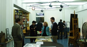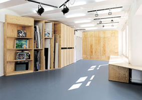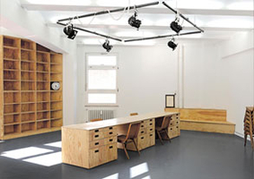 "The design of the studio is an examination, a dialectic process between context and concept, which’s formula represents a balance between user and usage . The artist Ernesto Handl works on many different media with many different methods, up to social sculpture in form of team building seminars and executive coachings. The requirements for his studio are accordingly complex and user specific. System and function are as important as are creative freedom and productive chaos. (...)